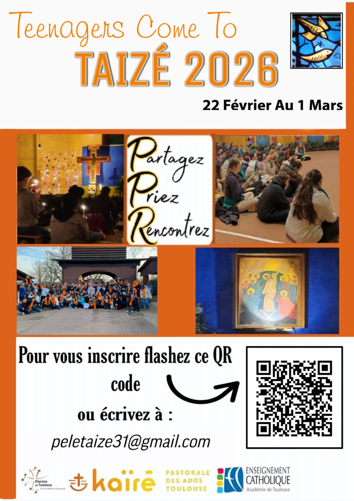 La présence assidue aux vendredis et à la journée d’intégration est nécessaire, la participation au pèlerinage à Taizé des lycéens (22 février – 1er mars 2026) et des quatrième-troisième au rassemblement Aquero (22 – 25 avril 2026) à Lourdes est encouragée.
